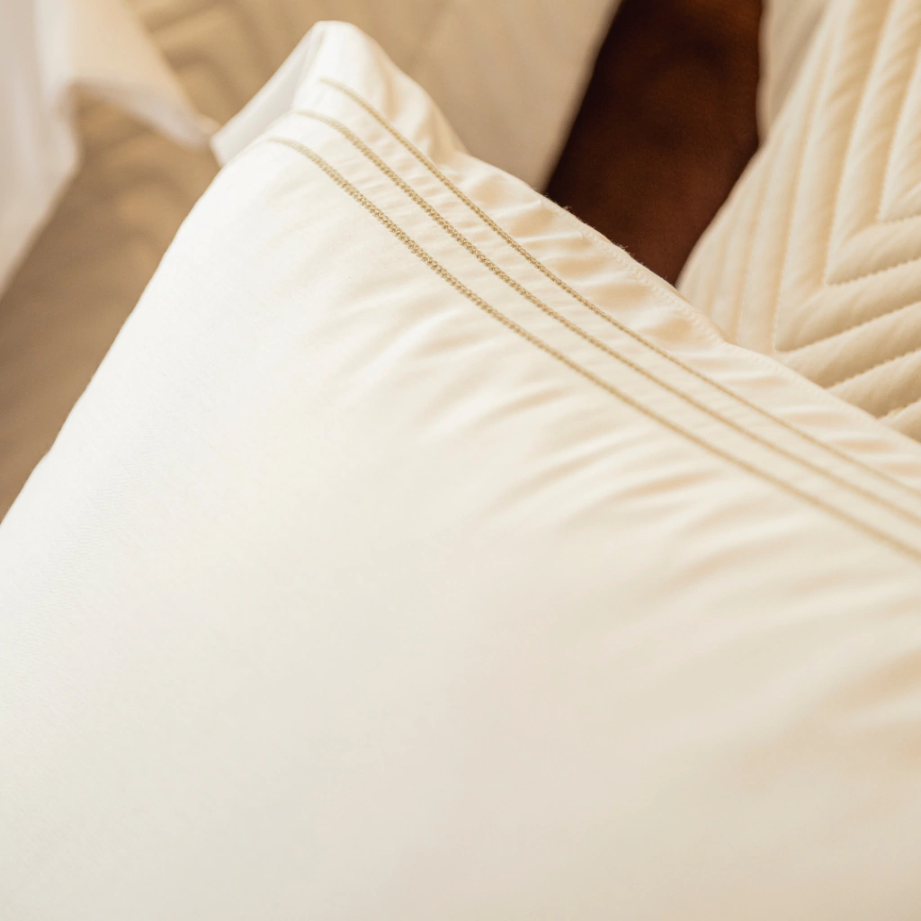 O algodão com fibra de bambu penteado 400 fios tem toque acetinado, que proporciona leveza e requinte ao produto.