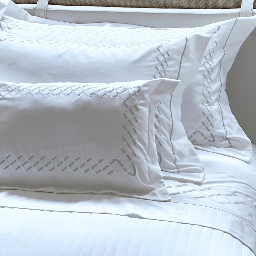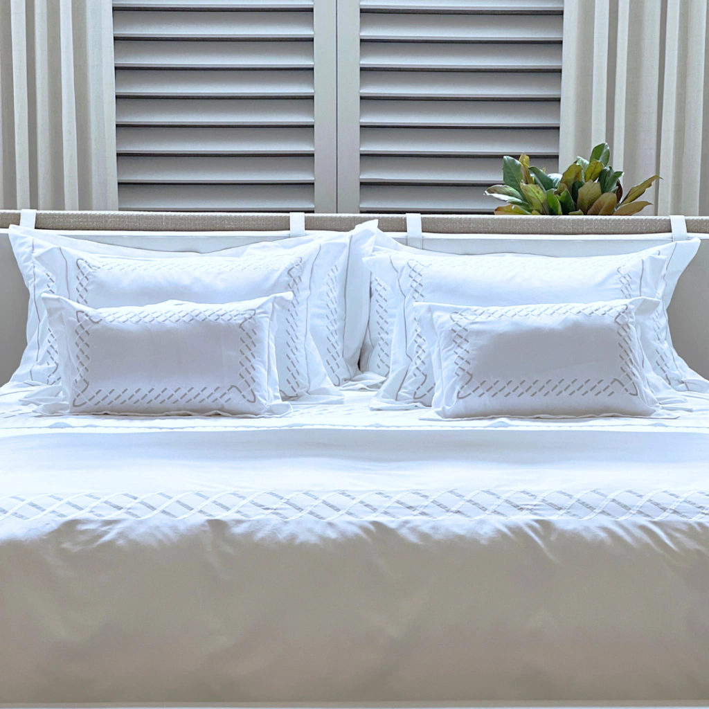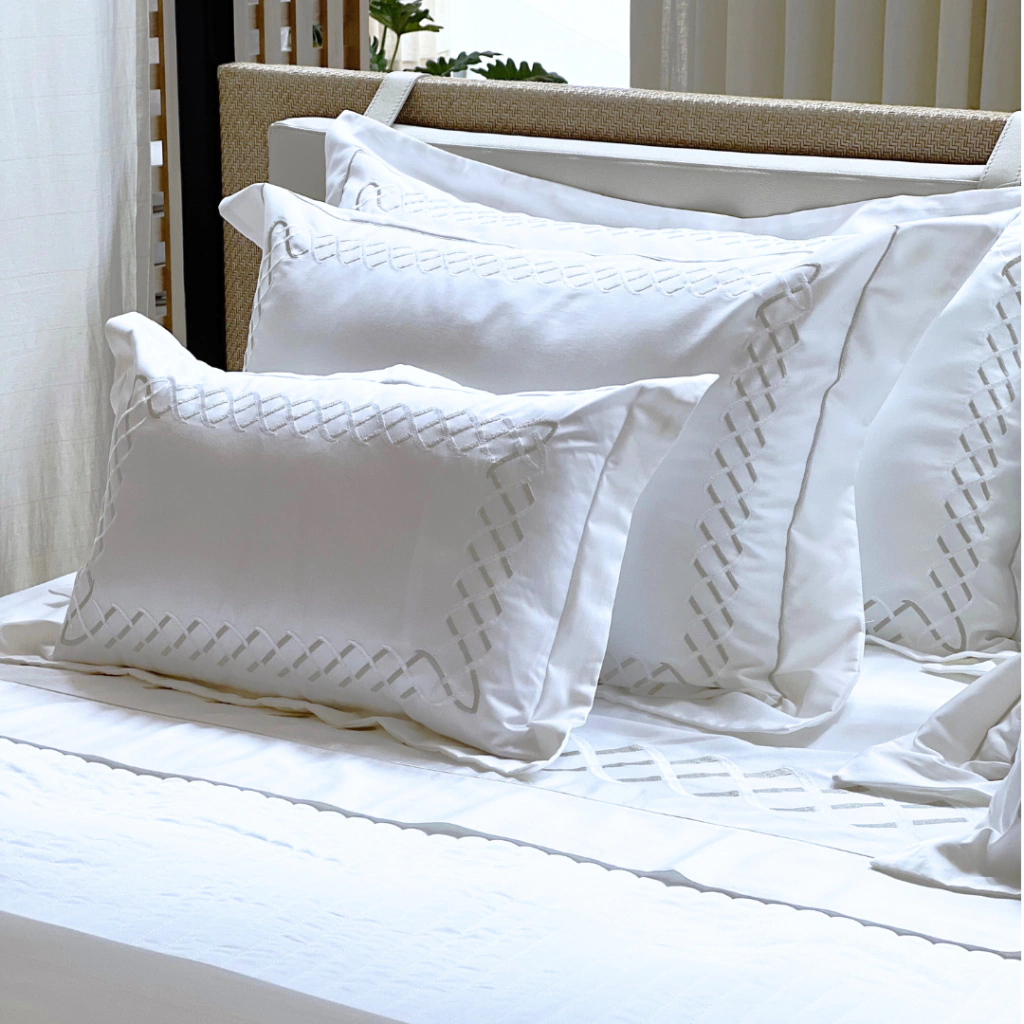 Divine by Chris Hamoui exalta a magnitude do bordado em “duo colore”: branco com fendi. O toque do tecido é um convite irrecusável ao descanso, à contemplação do luxo e da valorização do sono. O fio longo com toque acetinado imprime a elegância característica dos projetos assinados pela designer de interiores com um dos escritórios mais cobiçados do Brasil e principais países da América e Europa.